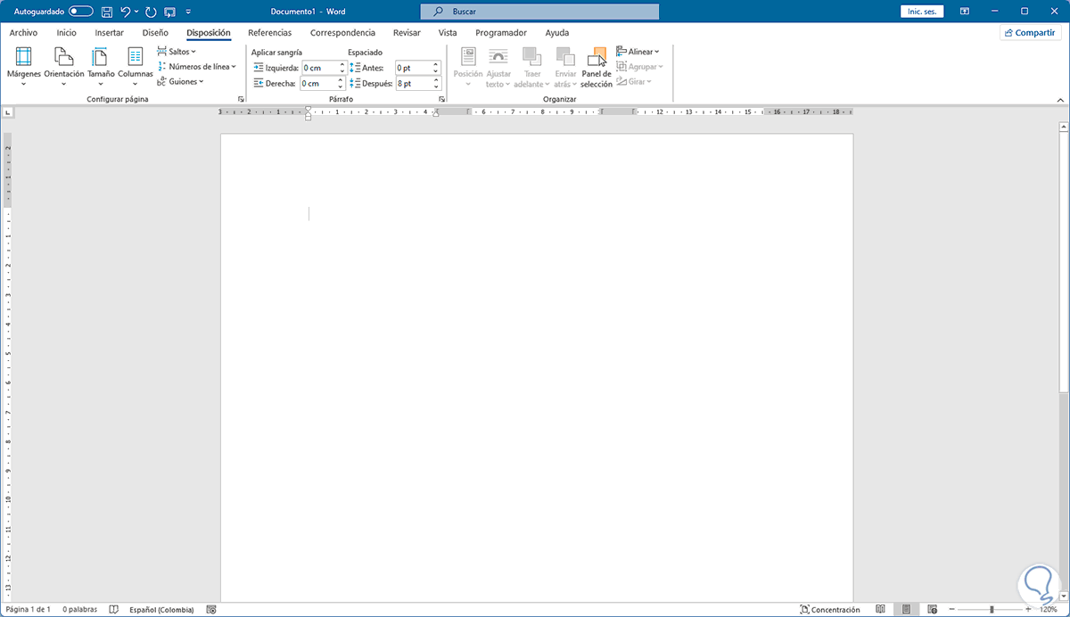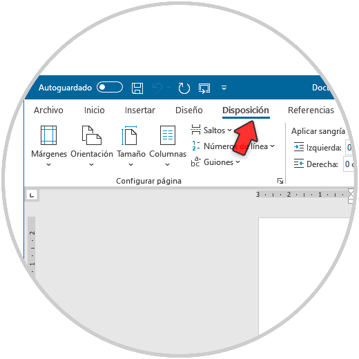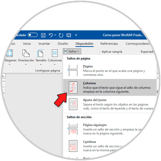 Es posible insertar columnas en un documento nuevo, para esto abrimos el nuevo documento y vamos al menú "Disposición":