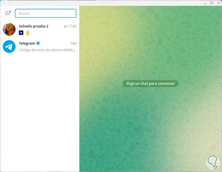 Lo primero que debes hacer es entrar en la app de Telegram desde el PC. Ahora entra en el chat que se encuentra el vídeo que quieres descargar.