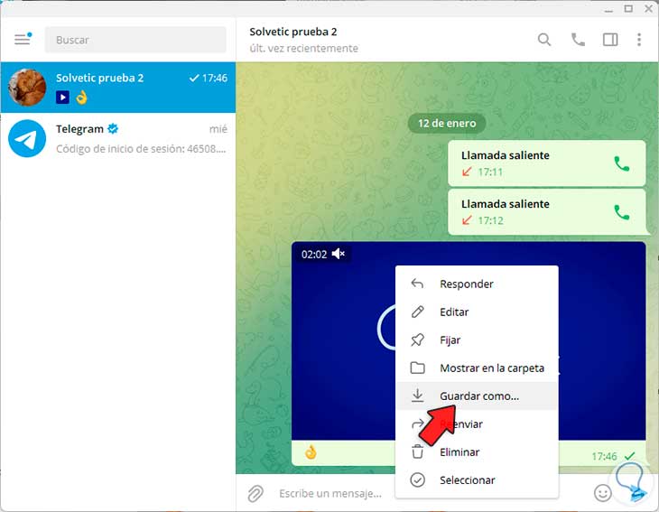 Una vez que estás dentro de este chat, tendrás que dar clic derecho con el ratón sobre el vídeo y verás que aparece un menú emergente. Pulsa sobre "Descargar"