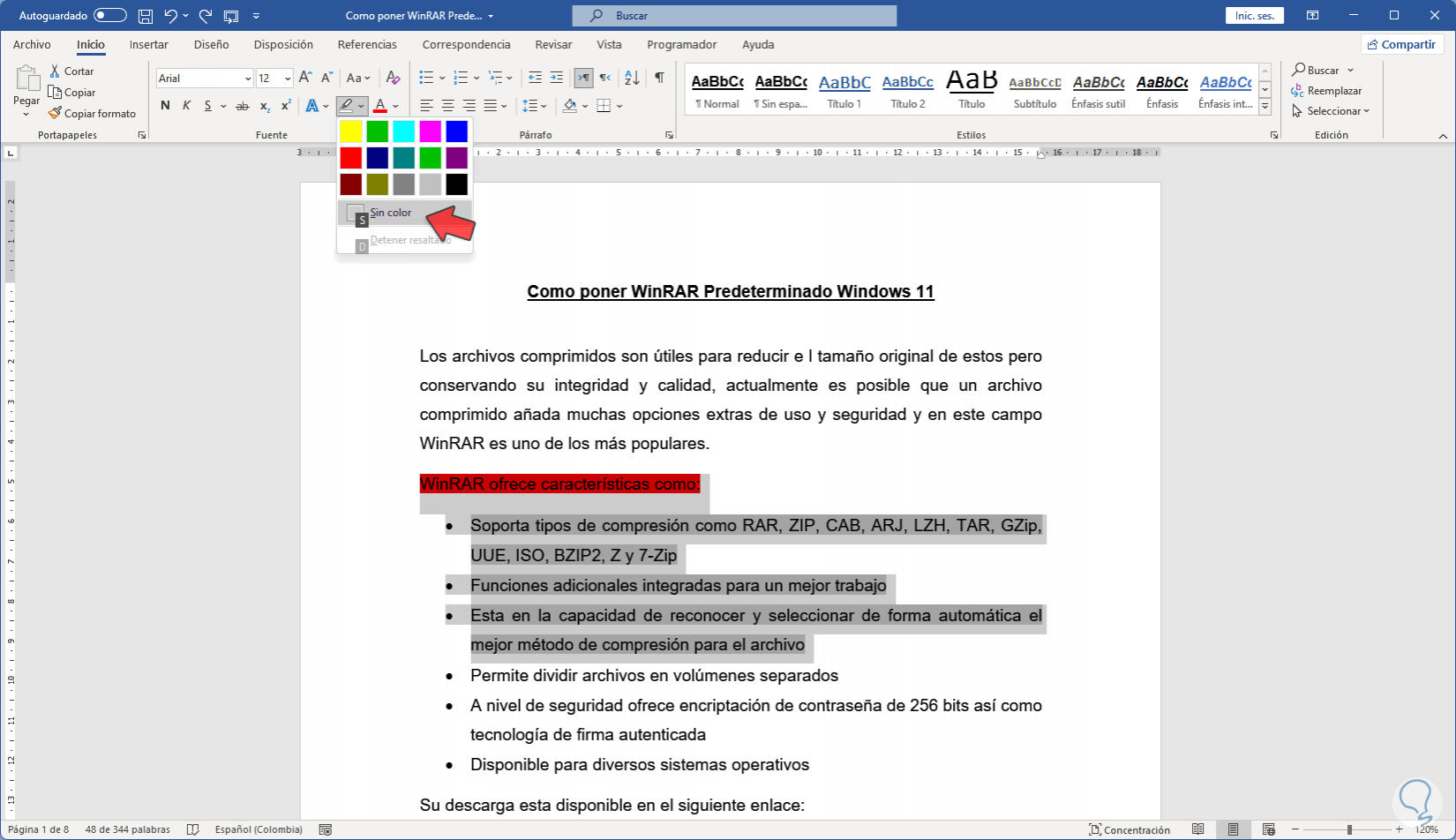 1. Cómo Quitar el Color Resaltado del Texto en Word desde Menú