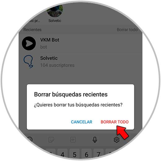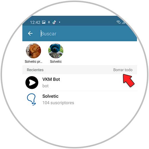Finalmente verás que las búsquedas han quedado borradas del buscador de Telegram.