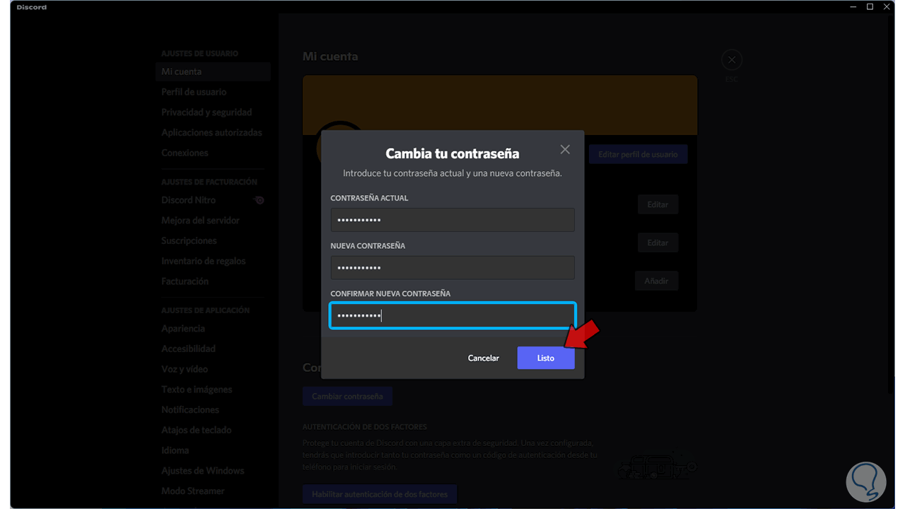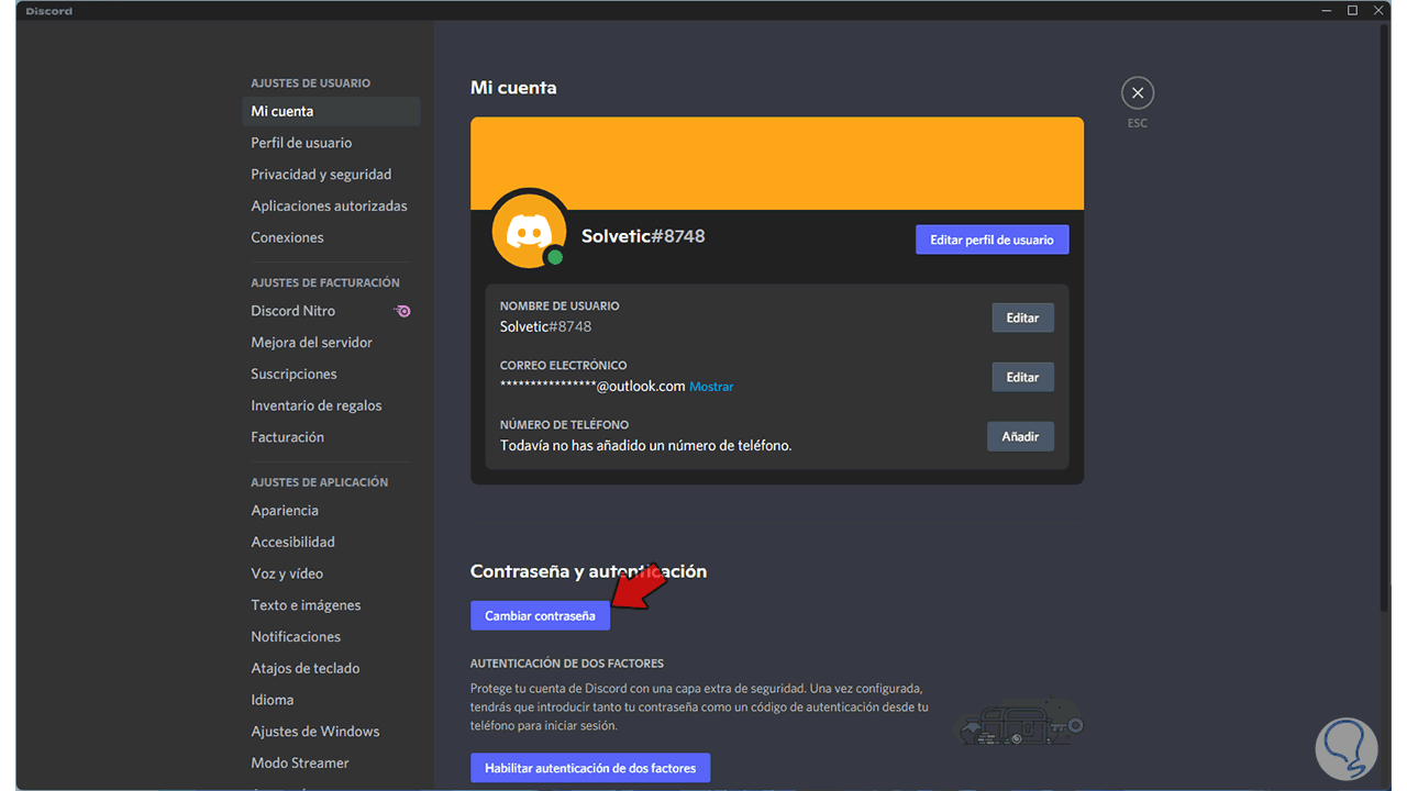 Cómo cambiar contraseña Discord