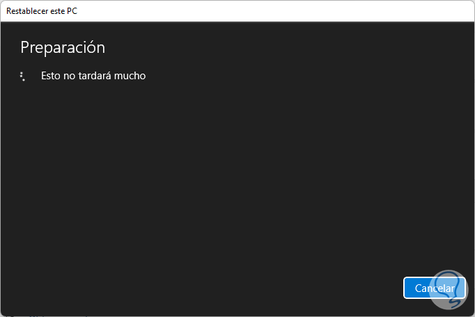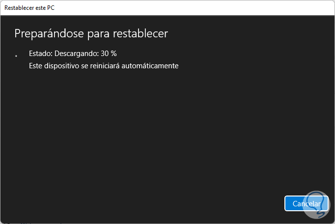 Se inicia el proceso de restablecer Windows 11 a su estado original: