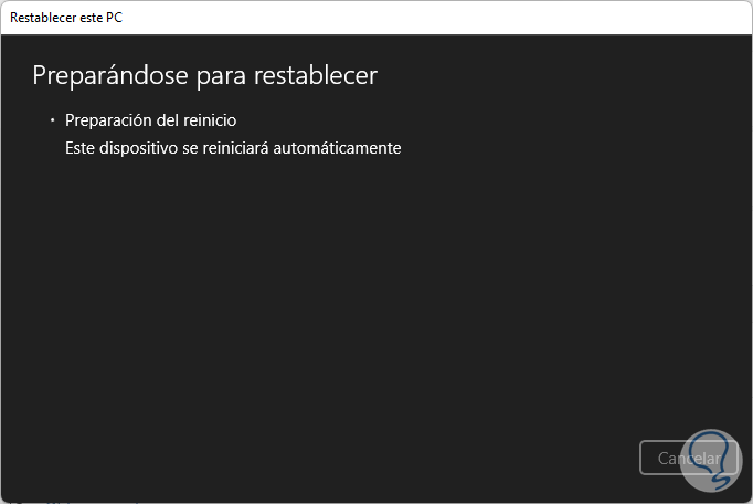 Windows 11 será reiniciado para completar el proceso de restablecimiento: