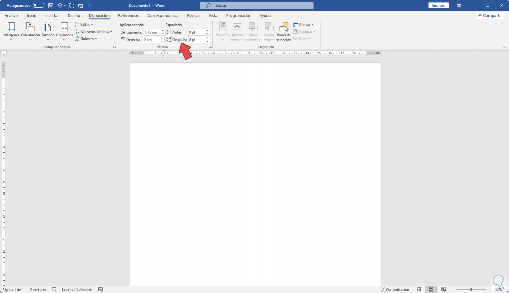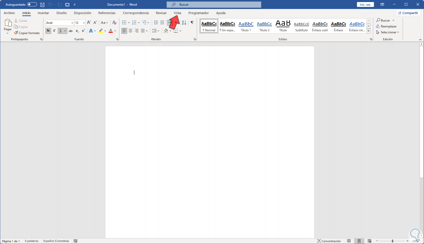 Abrimos Word y veremos que no se dispone de la regla actualmente, por ello la activaremos a continuación: