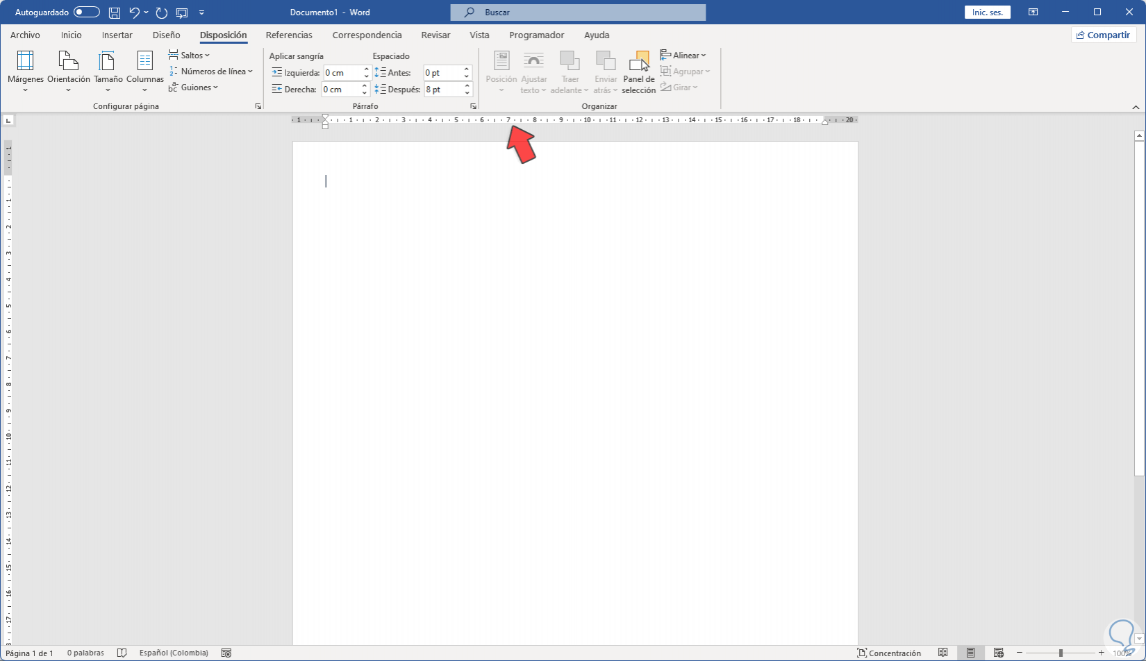 Es posible ajustar la regla de forma manual desde los marcadores superiores en función de cómo queramos configurar el documento: