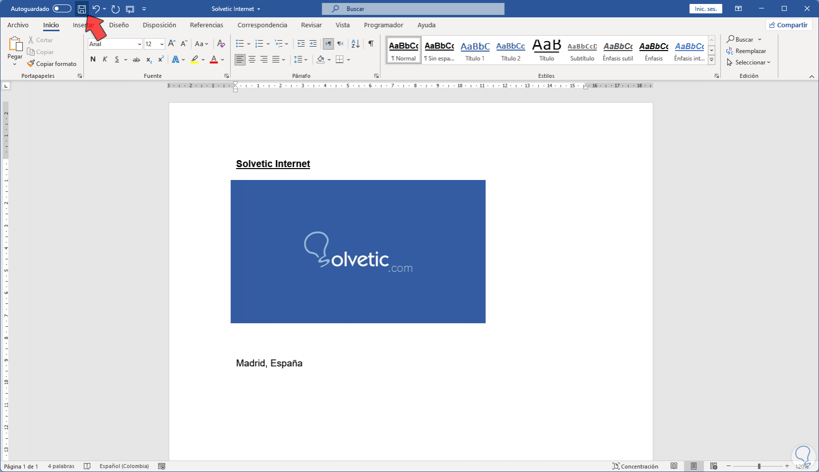 Esta opción permite guardar los cambios o el archivo con un solo clic, realizamos cambios en el archivo de Word:
