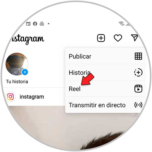 Lo primero que debes hacer es entrar en Instagram y seleccionar que quieres subir un vídeo en Reels.