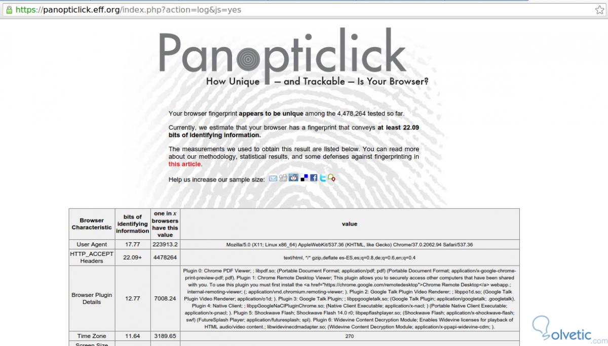 Lo interesante de este sitio es que nos dice cuántas identidades son diferentes a la nuestra y también los parámetros por los cuales somos únicos, con ello ya tenemos una guía de que debemos cambiar para poder evitar ser reconocidos en la red.