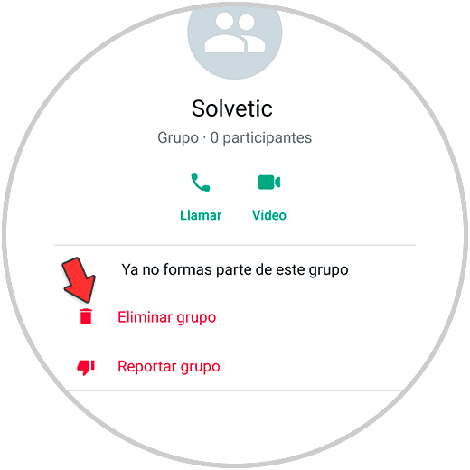 Ahora verás que ya no queda nadie el grupo. Pulsa en "Eliminar grupo" para que quede borrado por completo.