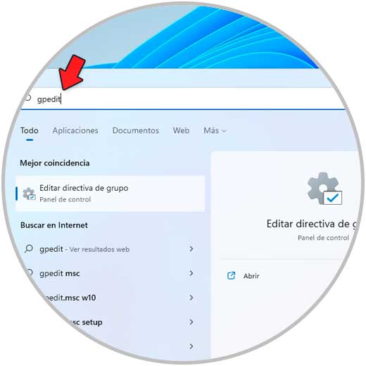 Las políticas de grupo solo están disponibles en las ediciones Pro y Enterprise de Windows 11, para su uso en el buscador de Inicio ingresamos "gpedit":
