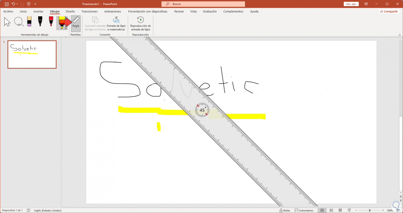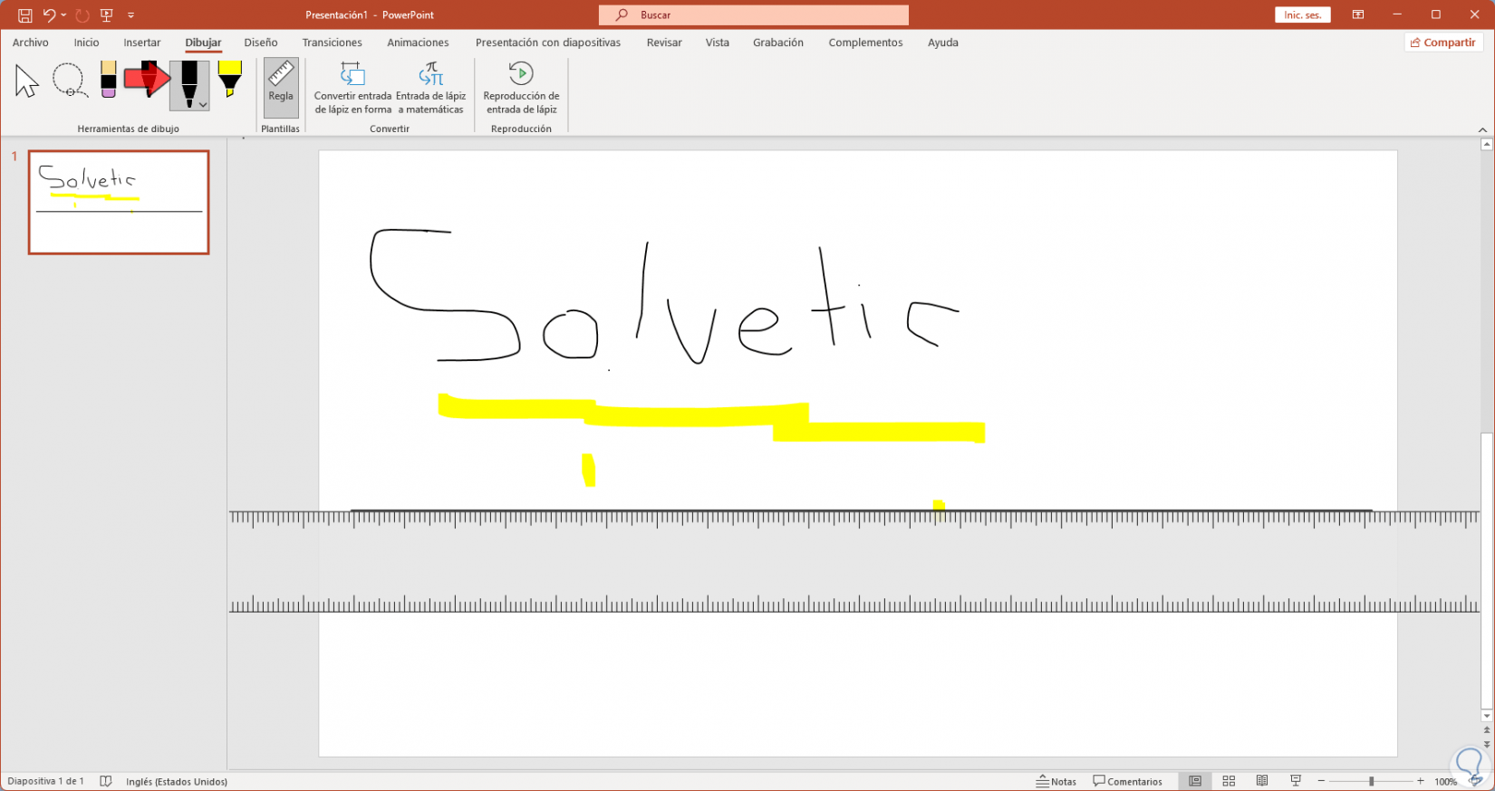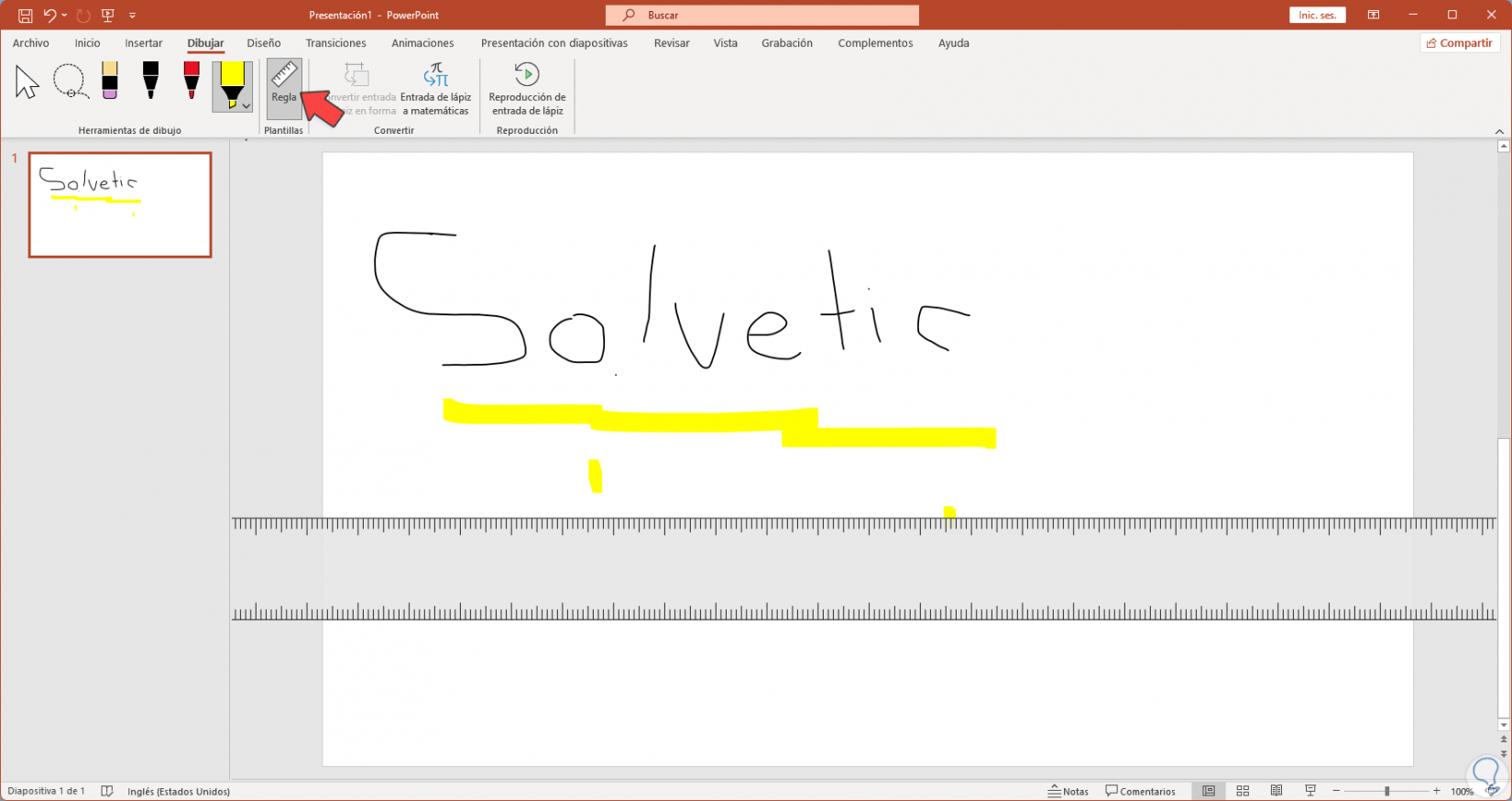 De nuevo damos clic en Regla para quitarla de la diapositiva: