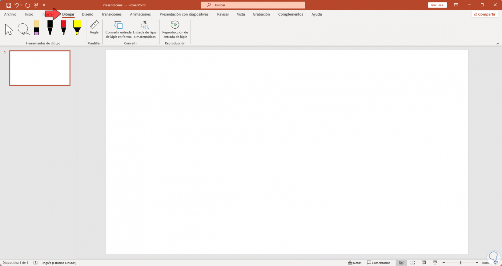Ahora en PowerPoint vamos al menú "Dibujar" donde dispondremos de una serie d opciones y herramientas a usar: