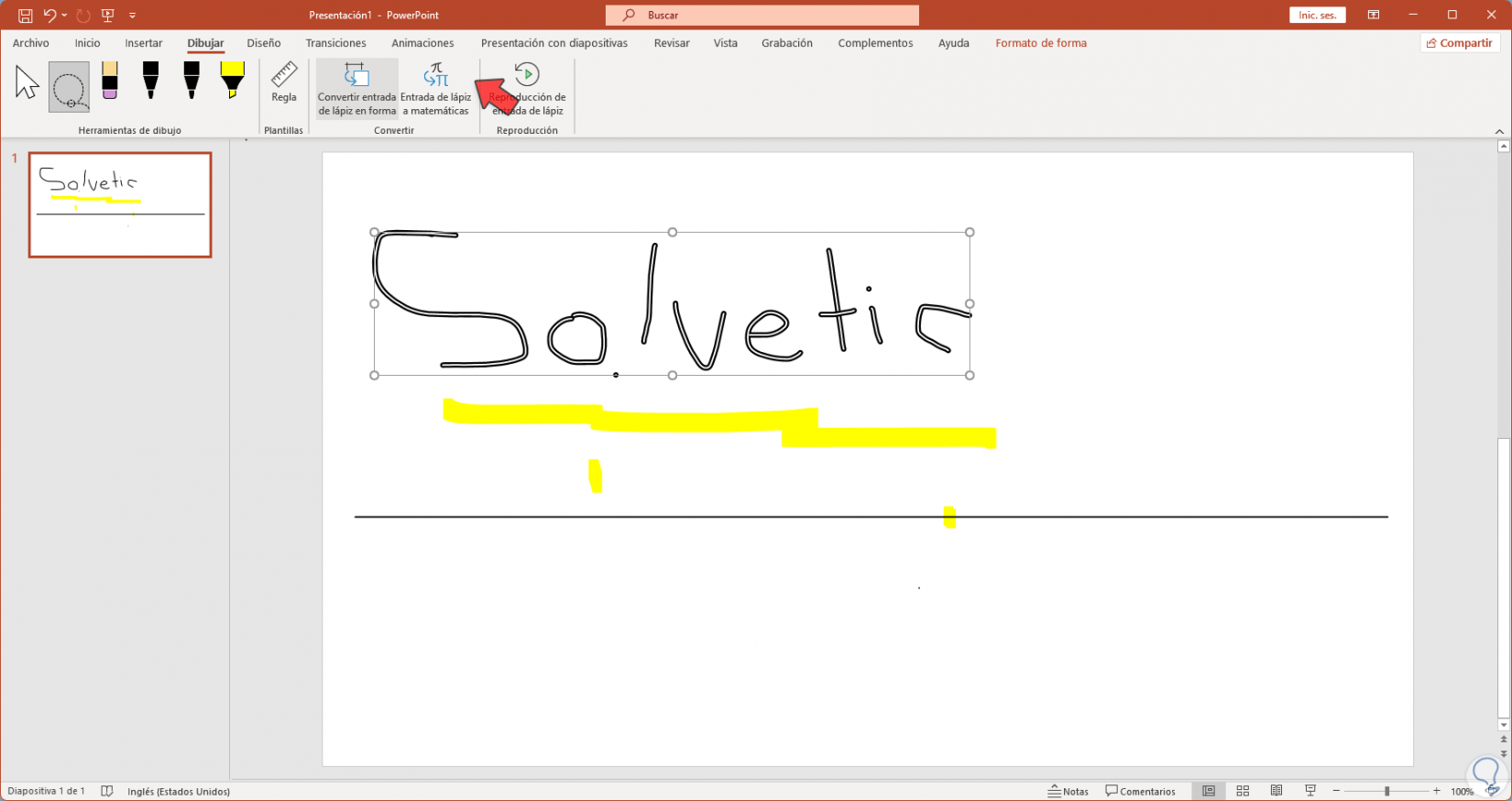 En el menú "Dibujar" damos clic en "Reproducción de entrada de lápiz" para ver la secuencia en la pizarra.