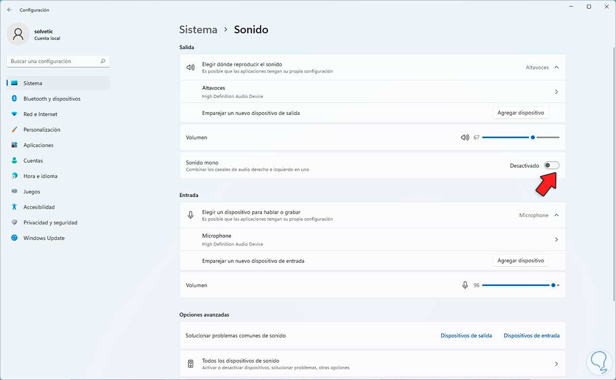 Para no usarlo simplemente desactivamos el interruptor. Así de sencillo es activar o no el sonido mono en Windows 11.