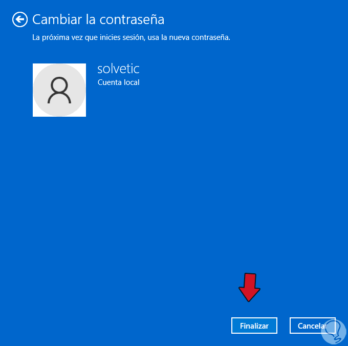 Damos clic en Finalizar para completar este proceso y usar la cuenta local sin contraseña.