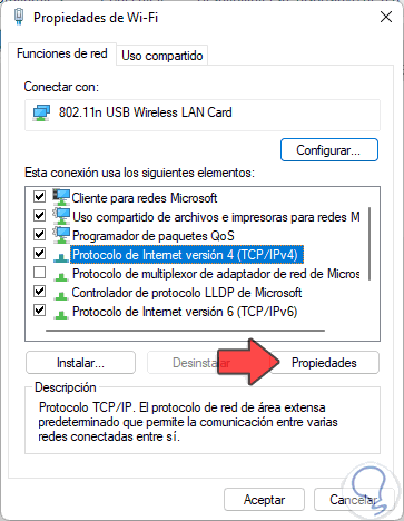 En la ventana emergente damos clic en "Protocolo de Internet versión 4":