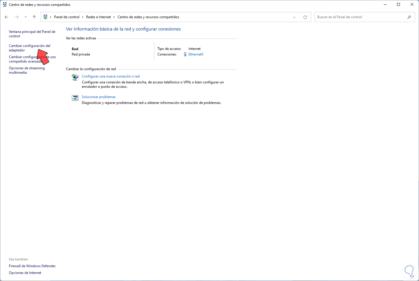Allí damos clic en "Cambiar configuración del adaptador" para ver los adaptadores actuales en Windows 11,