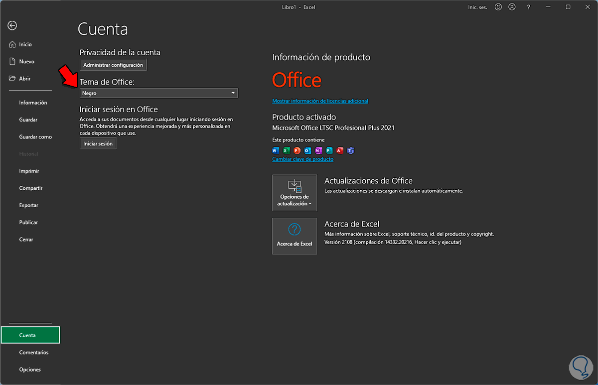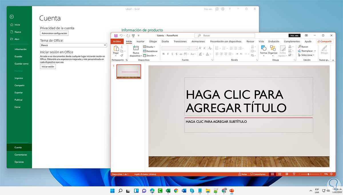 En Excel o PowerPoint vamos a "Archivo - Cuenta":