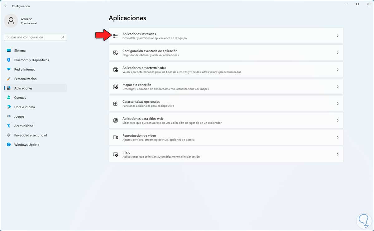 Vamos a “Aplicaciones - Aplicaciones instaladas”: