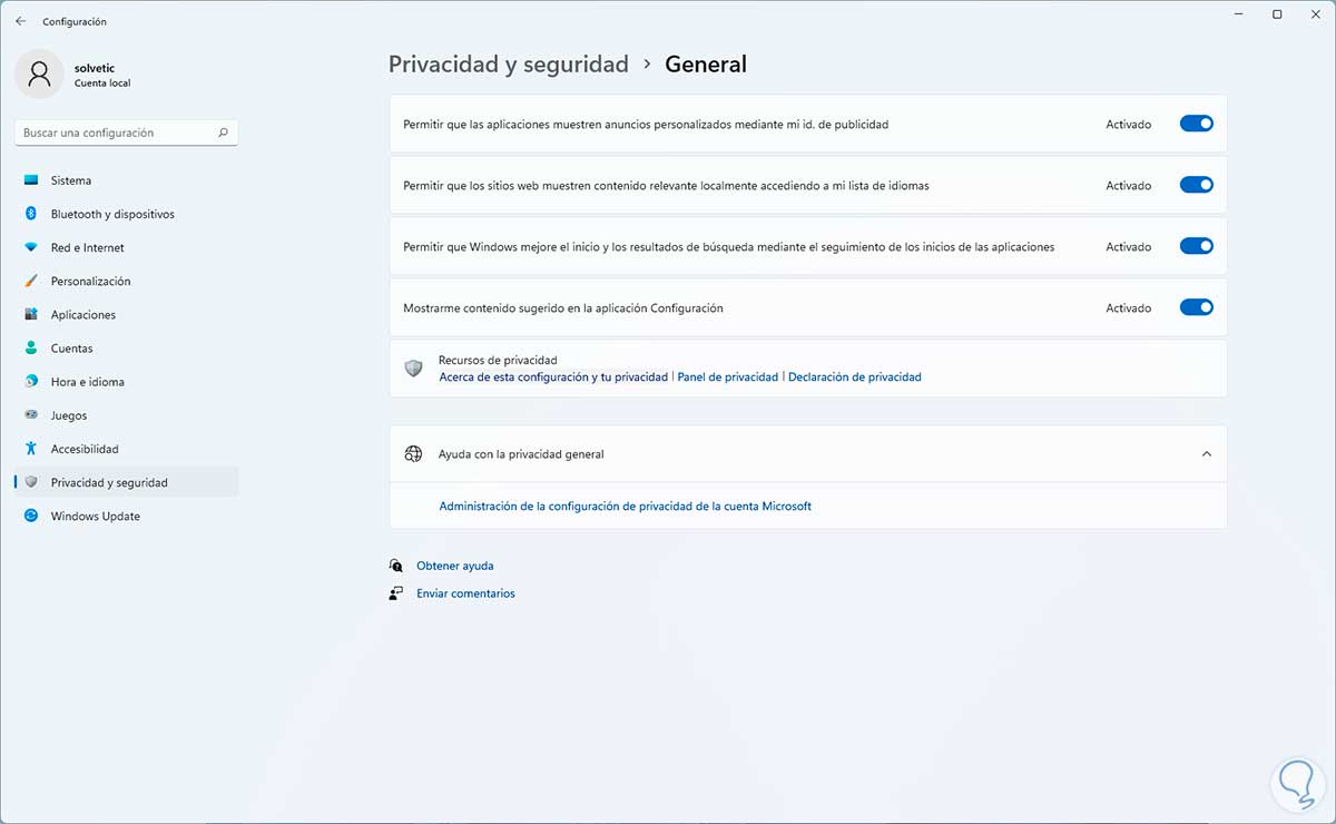 9. Cómo solucionar Windows 11 Lento desde Configuración (Privacidad y seguridad)