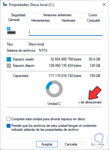 En la última edición de Windows 11 esta opción ha sufrido un cambio, allí damos clic en el botón "Uso de almacenamiento" y ahora se abrirá Configuración: