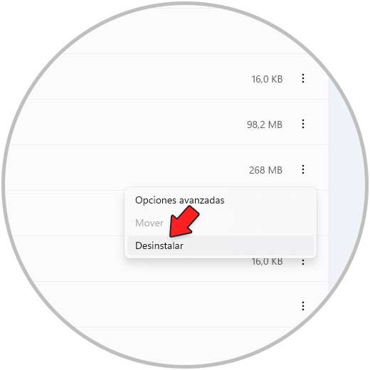 Allí se gestionará todo lo relacionado al espacio en el disco duro, damos clic en "Aplicaciones y características", pulsamos en el menú contextual de la aplicación que no usamos y seleccionamos "Desinstalar":