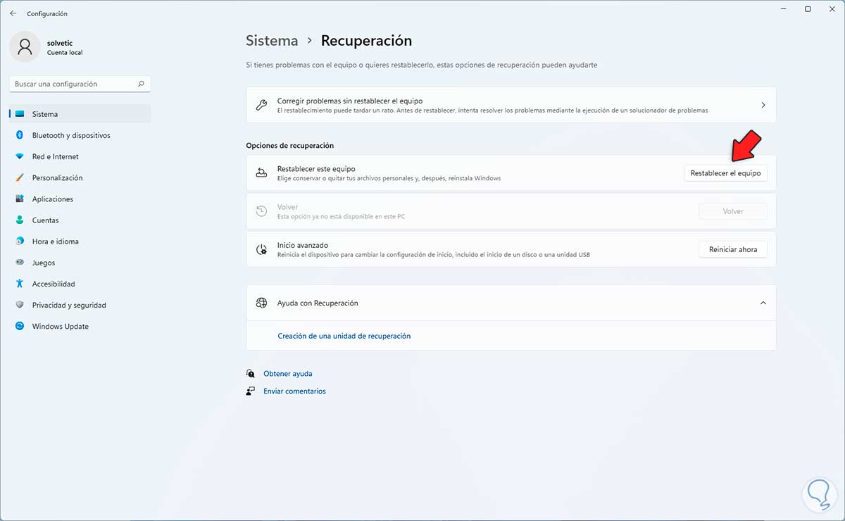4. Cómo Limpiar Mi PC Windows 11 de Archivos Basura restableciendo el PC