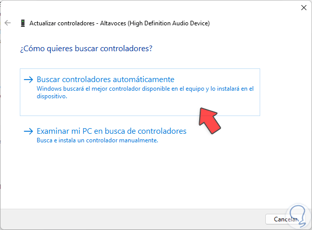 1. Reparar sonido de mi PC Windows 11 actualizando controlador automáticamente