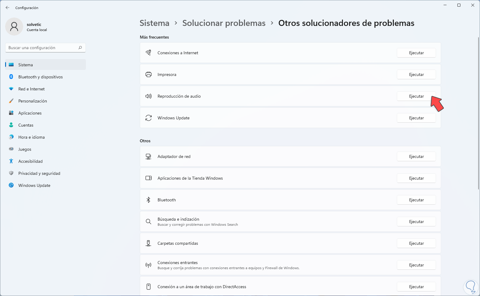 2. Reparar sonido de mi PC Windows con Solucionador de problemas