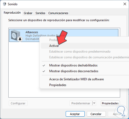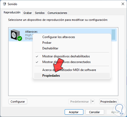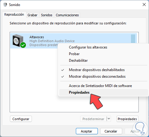 6. Reparar sonido de mi PC Windows 11 configurando dispositivo