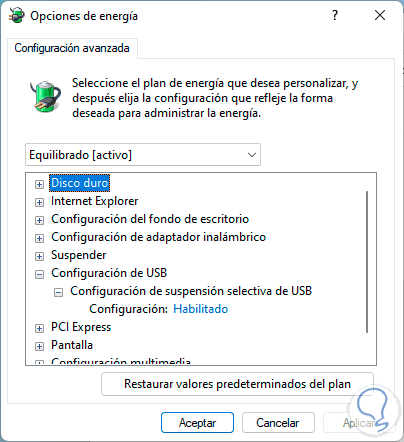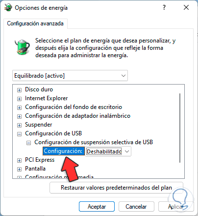 4. No se reconoce el Dispositivo USB Windows 11 | Solución desde Configuración de energía