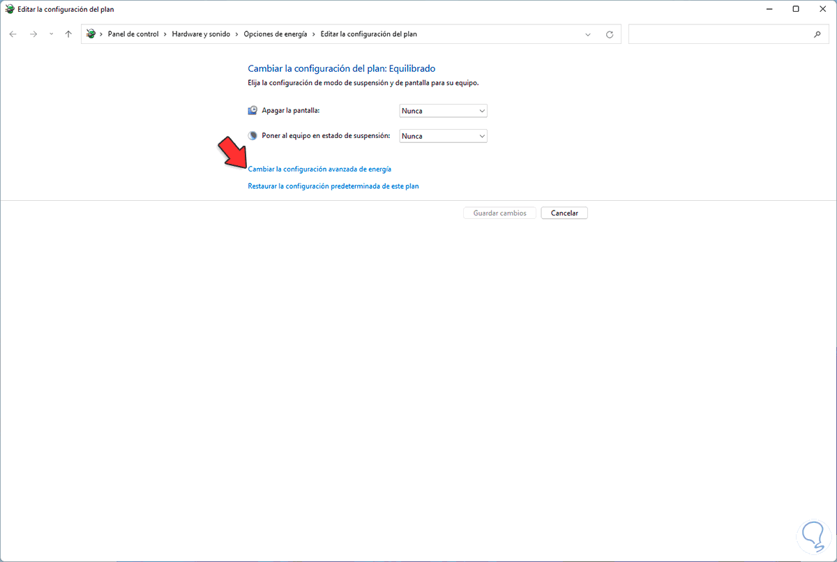 Selecciona "Editar plan de energía" y se abrirá lo siguiente: