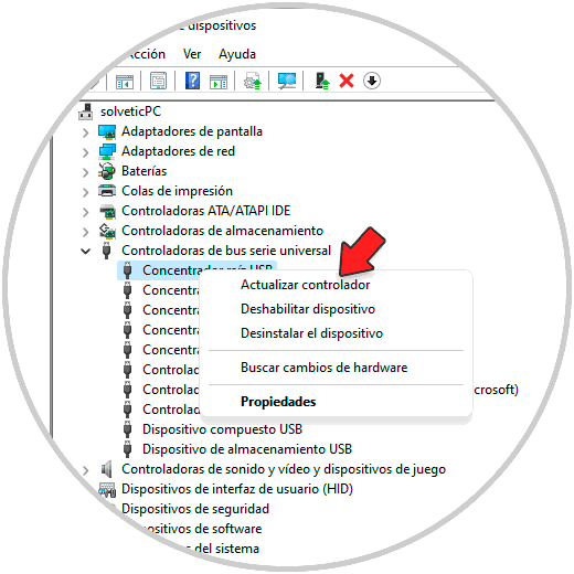5. No se reconoce el Dispositivo USB Windows 11 | Solución actualizando el controlador