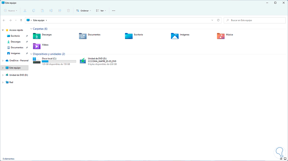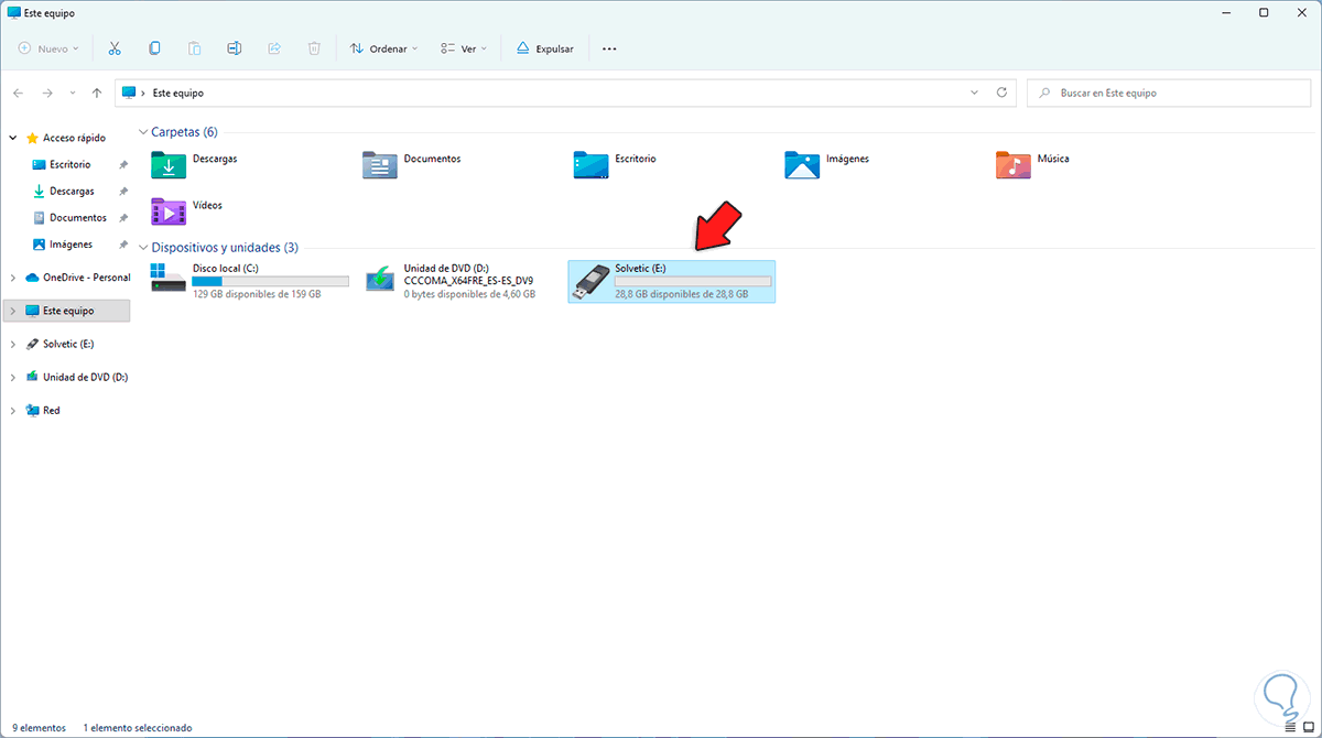 Esta es una forma simple de hacer visible nuestra USB en Windows 11, abrimos el Explorador de archivos y comprobamos que la USB no es visible: