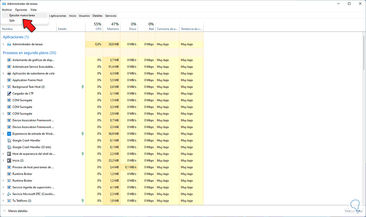 Vamos a "Archivo - Ejecutar nueva tarea":