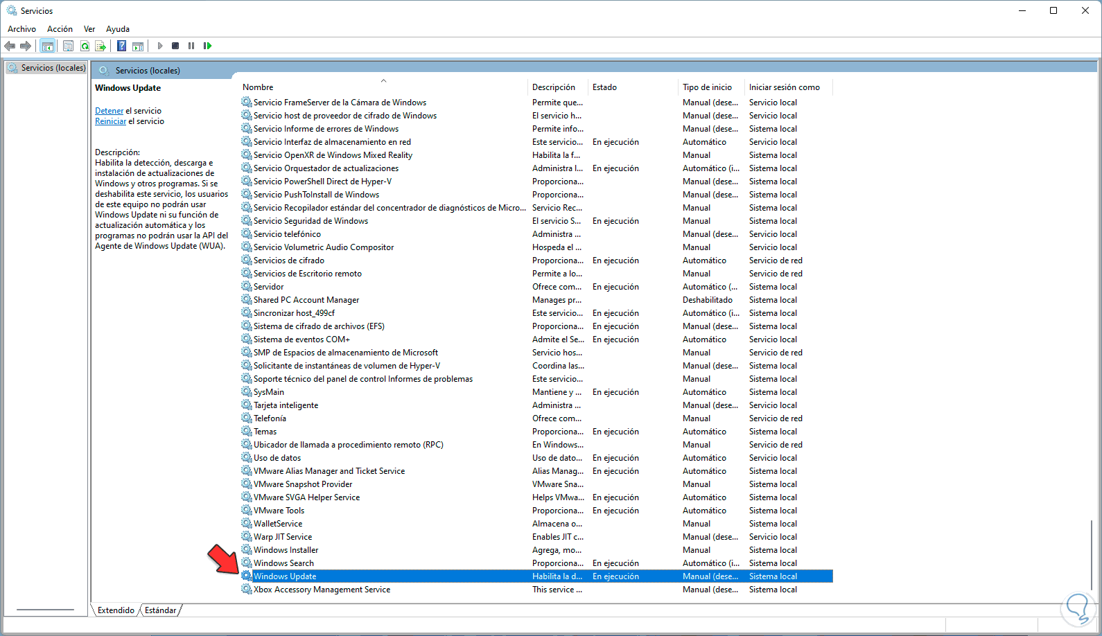 Ahora damos doble clic sobre el servicio "Windows Update":