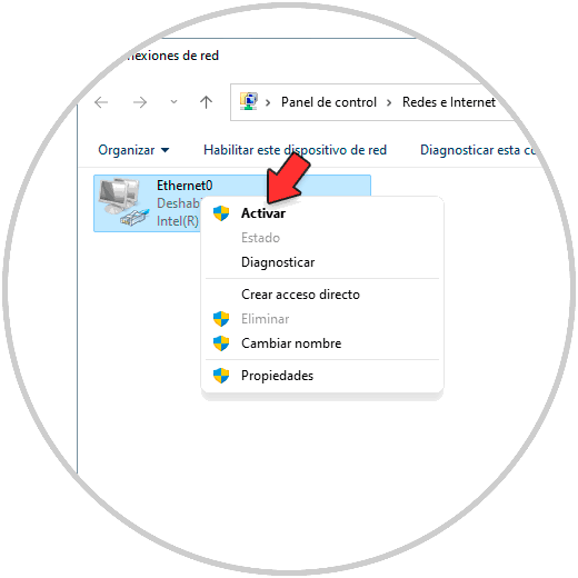Si el adaptador esta deshabilitado, damos clic derecho sobre este y seleccionamos "Activar":