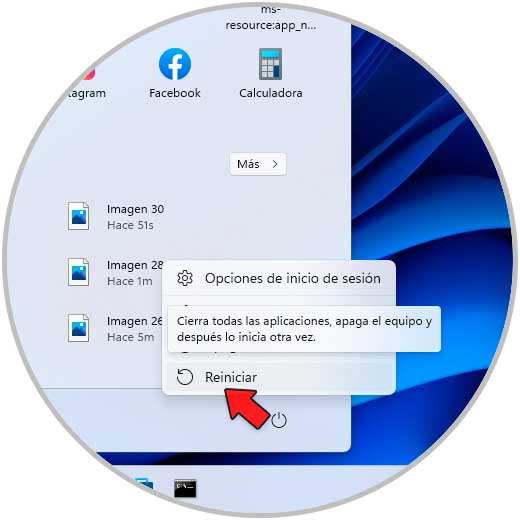 Reiniciamos Windows 11 para que los cambios sean aplicados: