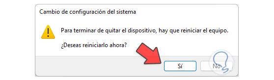 Ahora veremos lo siguiente. Reiniciamos Windows 11 dando clic en Si.