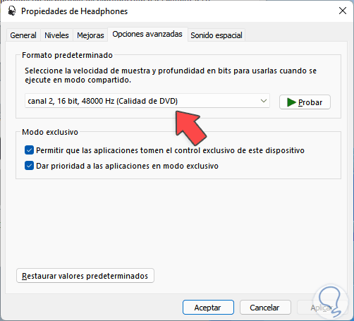 5. Solución Auriculares Windows 11 con Opciones avanzadas de sonido