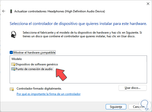 Con este método buscamos reinstalar los controladores de los auriculares de forma manual, es decir, estos son unos controladores que están por defecto dentro de Windows 11 y puede ser la solución a nuestro problema