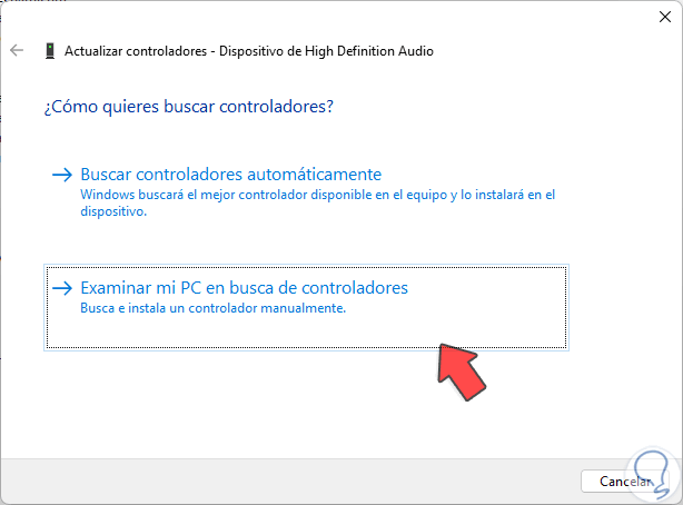Veremos lo siguiente. Damos clic en "Examinar mi PC en busca de controladores"