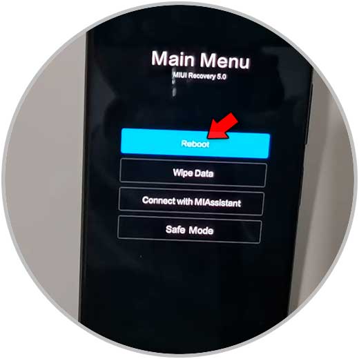 Al encenderse, aparecerá en la pantalla el menú de recuperación. Pulsa sobre la opción de “Reboot”. Si te quieres mover entre las opciones utiliza los botones de subir y bajar volumen y la tecla de “Power” para confirmar.