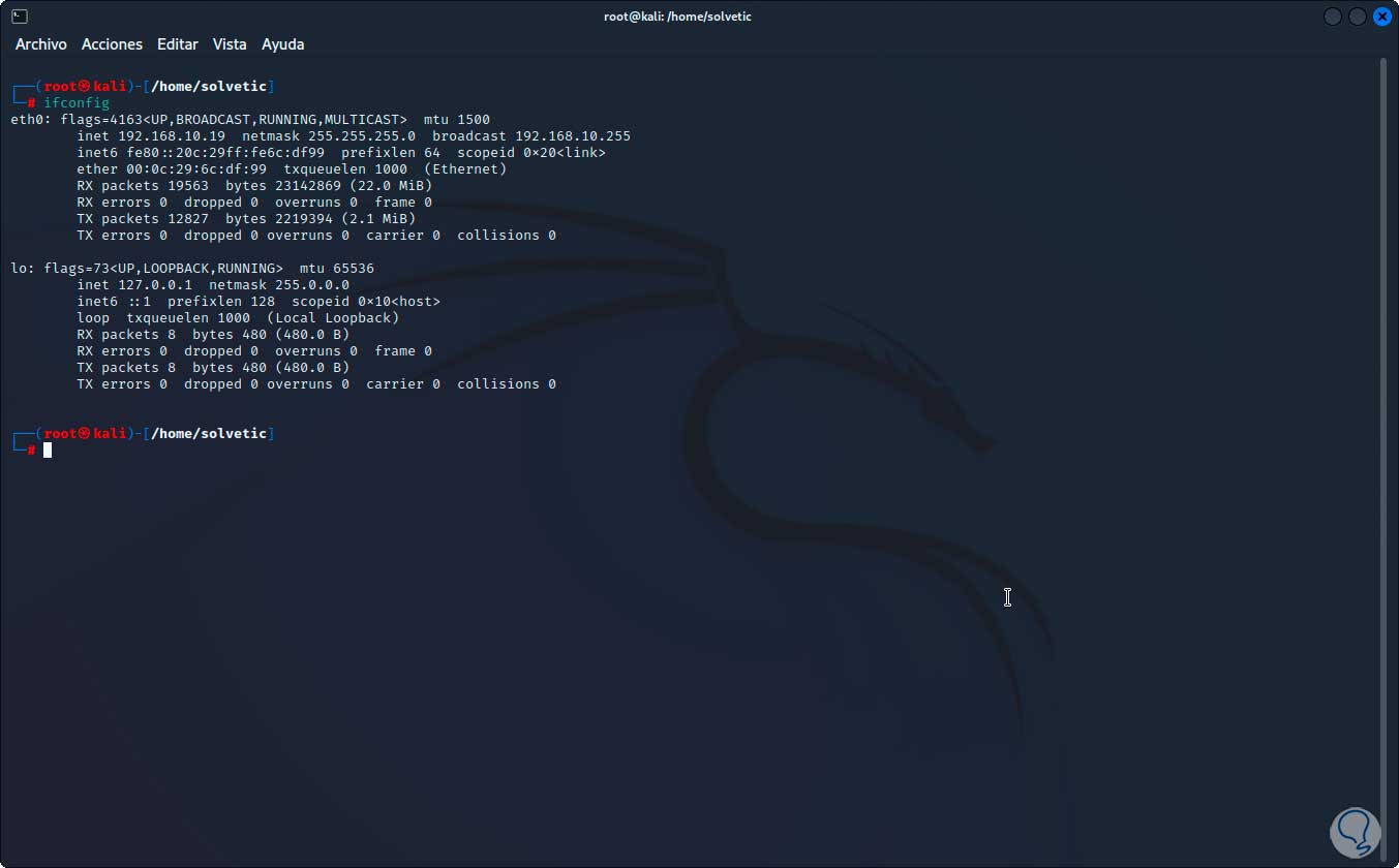 Con estos simples pasos ha sido posible cambiar tanto la dirección IP como la dirección MAC del adaptador de red en Kali Linux y usar estos para las tareas requeridas.