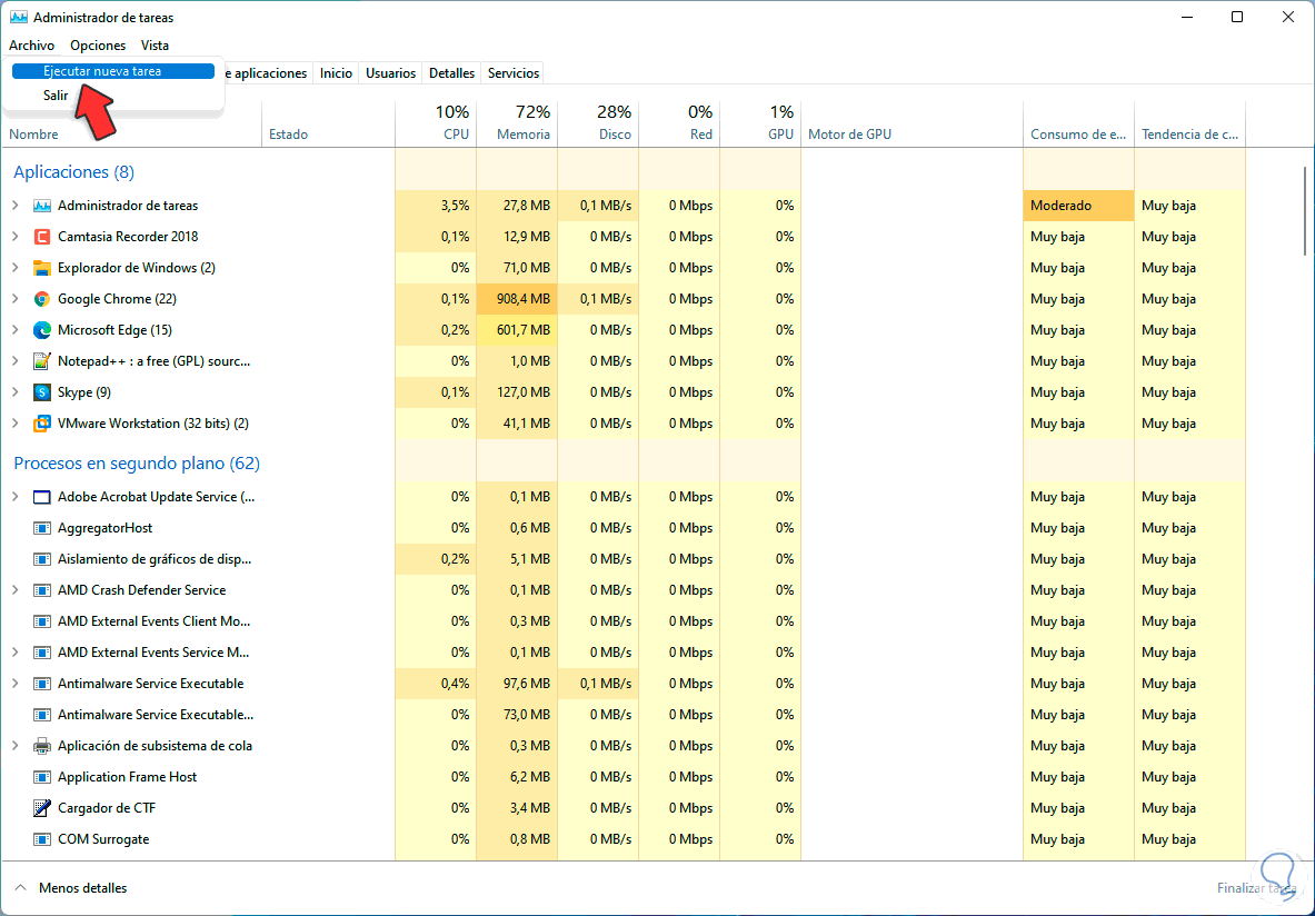 En este caso abrimos el Administrador de tareas: