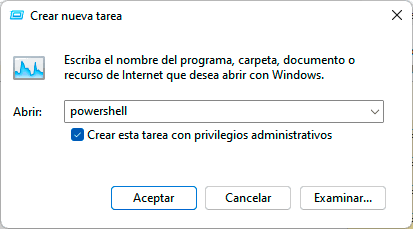 En vista de que el buscador no nos sirve, tendremos que acceder a PowerShell directamente desde el administrador de tareas.