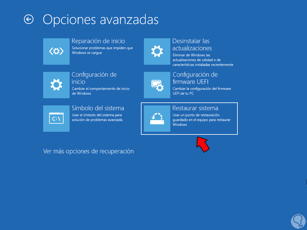En el buscador ingresamos "recupera" y seleccionamos "Opciones de recuperación":
