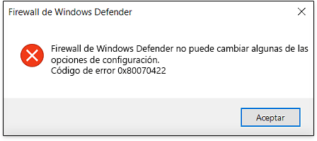 Firewall Windows No Puede Cambiar Algunas las Opciones Configuración | Error 0x80070422