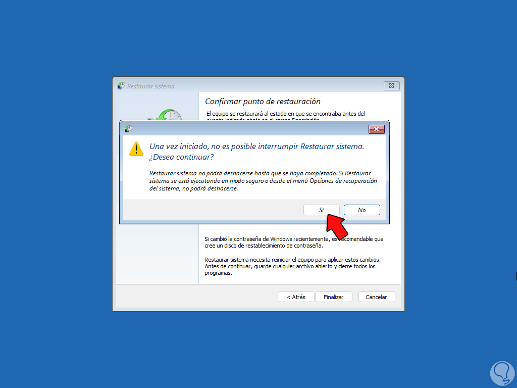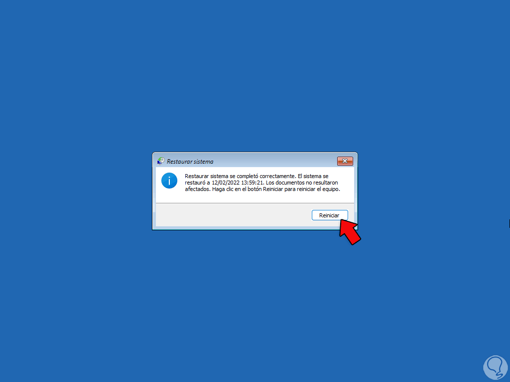 En la ventana desplegada damos clic en "Reiniciar ahora":